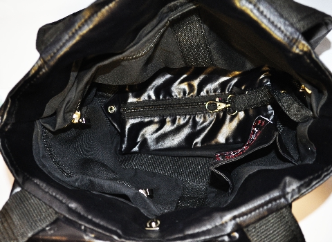 Na dnie tej czarnej torebki jest piórnik przyklajany na rzepa -co by się szybko do długopisa dostać